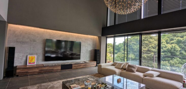 100インチスクリーンを使用した4Kエントリープラン。サラウンドは5.1.2chDolbyAtmos採用。